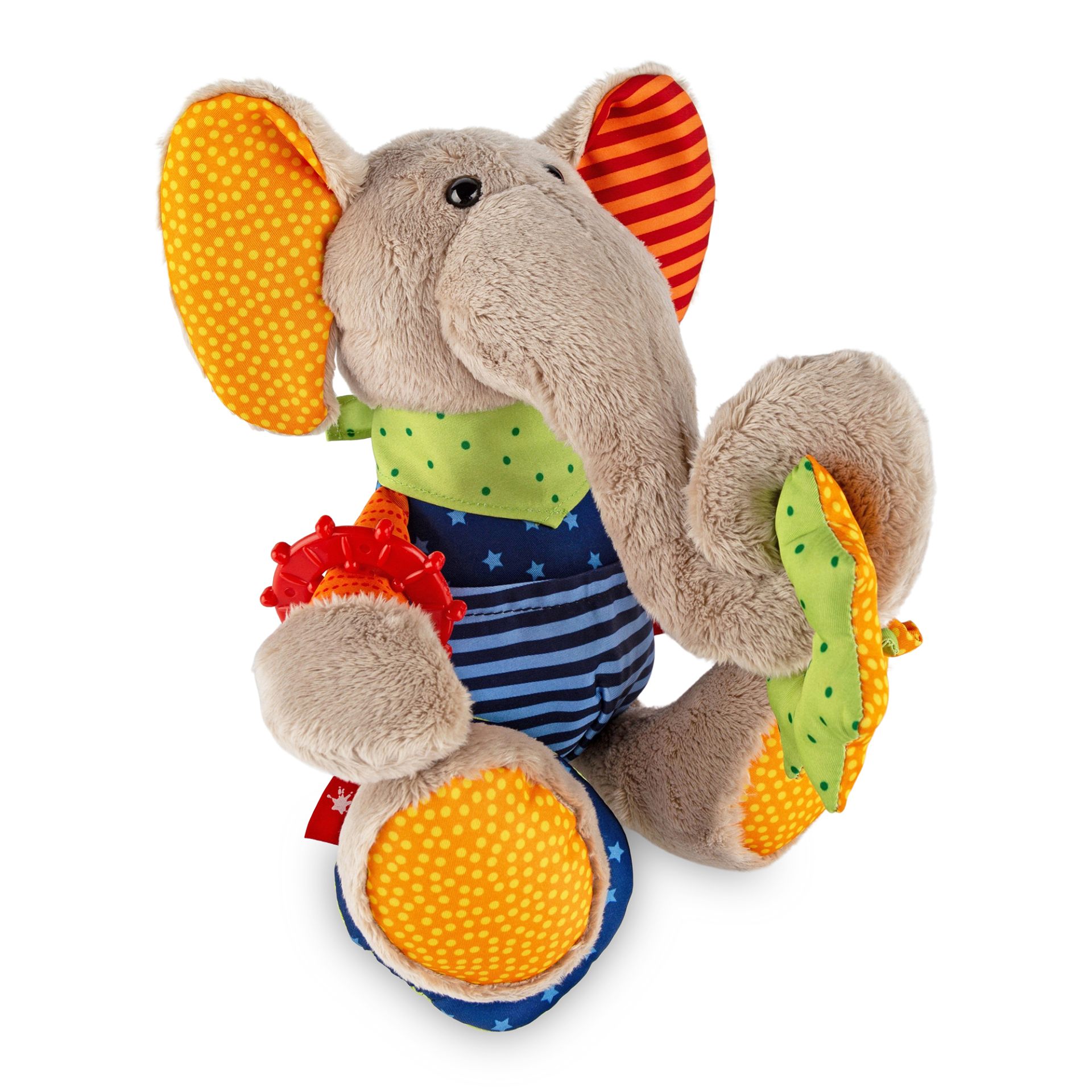 De zachte pluche olifant brengt baby’s zoveel spannend speelgoed als hij kan dragen! Met zijn bijtspeeltje, bijtring, ingebouwde rammelaar, pieper en knisperfolie zullen kleine bundeltjes energie hun handen lang vol hebben. De knuffelzachte pachyderm wordt baby’s eerste vriendje en creatieve speelkameraadje.