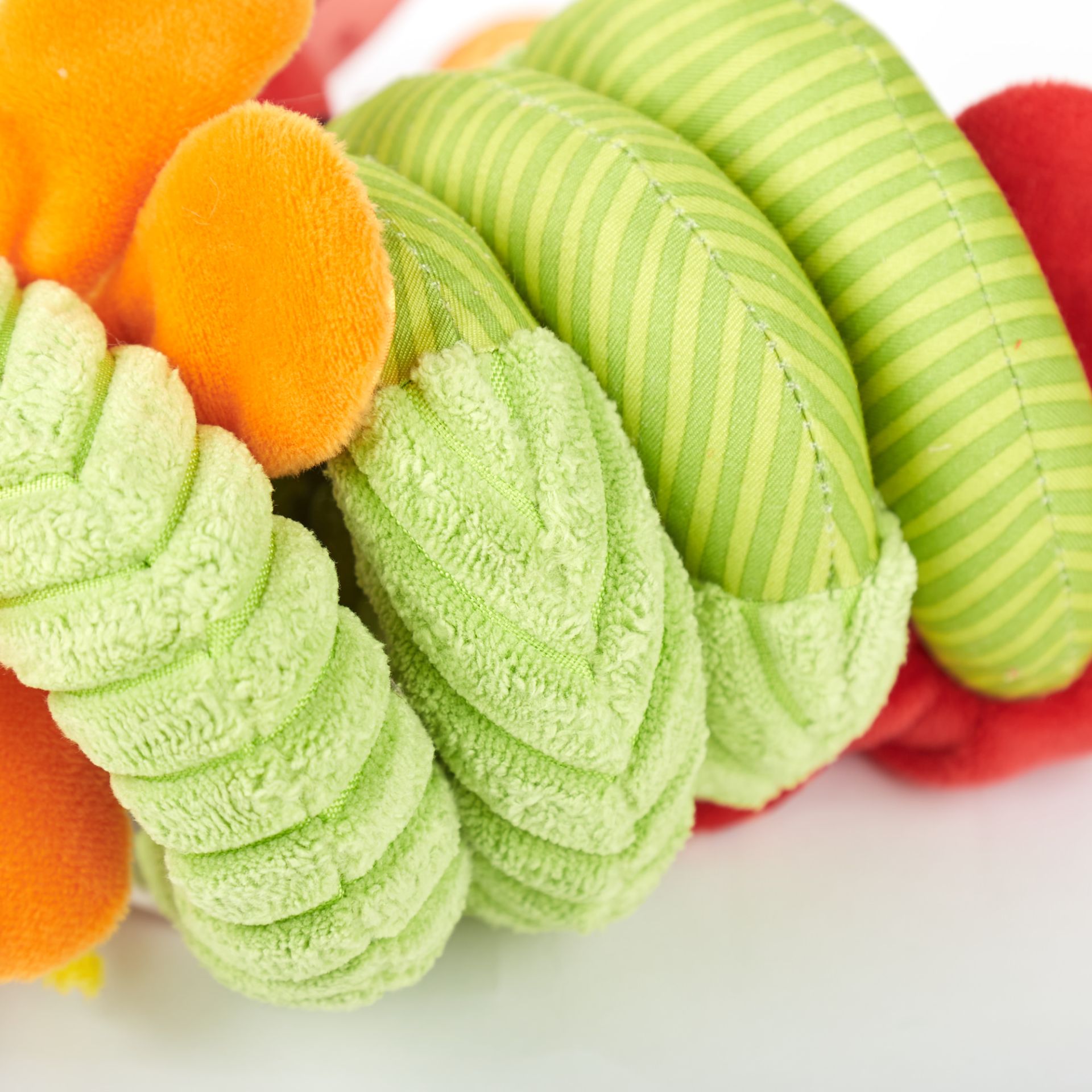 Een heel speelgebied krult om het handvat van de draagzak, kinderwagen of het activiteitencentrum. Kleurrijke vlinders met bijtring en foliespiegel en een lieveheersbeestje bungelen binnen baby’s bereik. Als je het beestje nieuwsgierig naar je toe trekt, spint het weer terug. Mooie details in felle kleuren en babyvriendelijke speelfuncties zorgen voor veel afwisseling voor kleintjes onderweg.