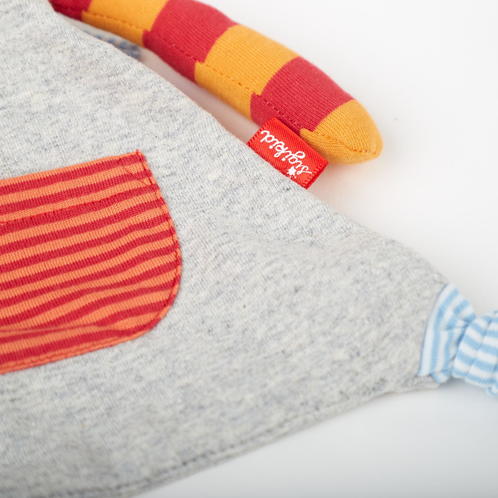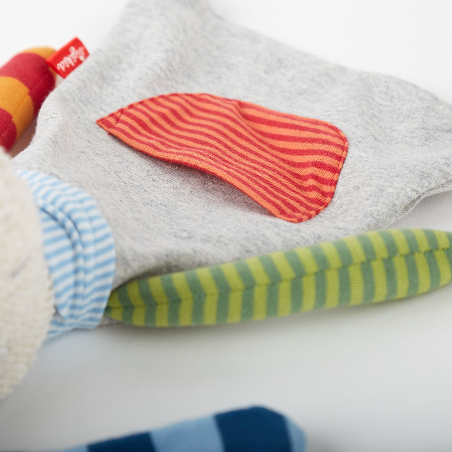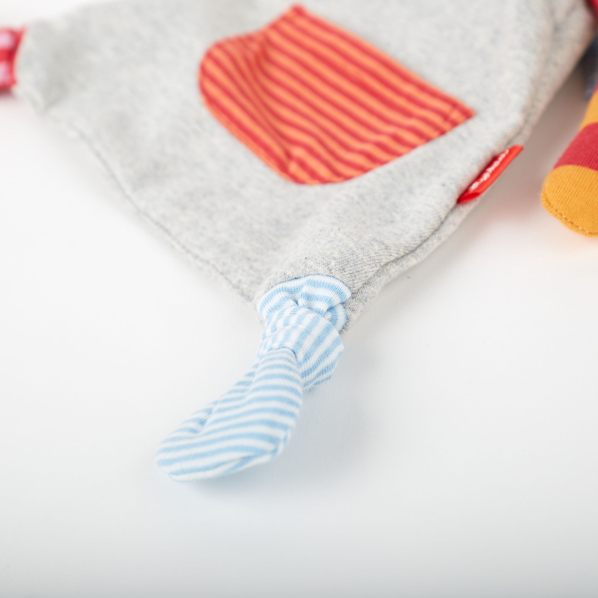 Ringeldingel, deze naam zegt het al! Het vrolijke, kleurrijke konijntje laat niet alleen een babyhartje sneller kloppen. De knuffel is de eerste trouwe metgezel waarmee je veel kunt ontdekken. Zijn verscheidenheid aan kleuren en vormen zal je in een goed humeur brengen. Het zachte 100% katoenen materiaal van het knuffeldoekje met zijn zachte vulling van polyesterwatten is precies goed wanneer kleintjes een knuffel willen. Van deze Mümmelmann moet je gewoon houden!